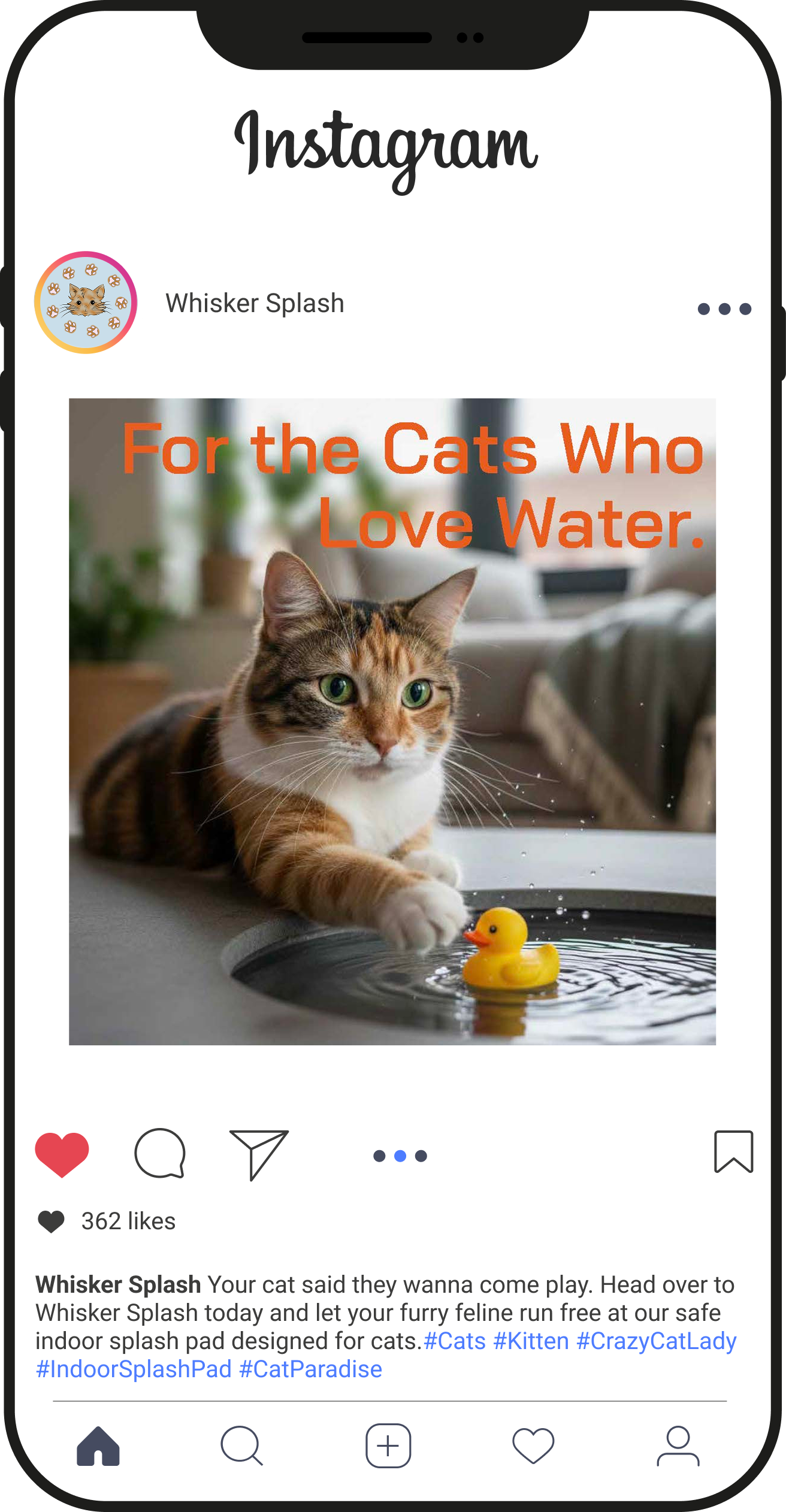 This is logo project I worked on and plan to expand it more in the future. I created an imaginary company called Whisker Splash. Whisker Splash is an indoor splash pad for cats of all ages. I designed a logo, two Instagram post mockups, and a billboard ad mockup. This project brought me a lot of joy to work on and reflects the kind of fun creative work I like to do.