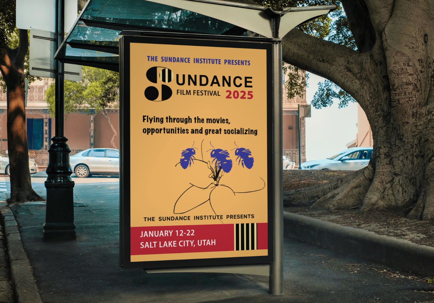 I created a brand identity for the Sundance Film Festival; this project is inspired by bees and the Sego Lily, representing opportunity, creativity, and collaboration. The concept uses bees to symbolize teamwork, focus, and shared success, reflecting how a festival depends on collective effort, while the Sego Lily connects the design to Utah and represents growth and community. I used bright, vibrant colors to enhance energy and visual impact, reinforcing the festival’s creative spirit and making the identity feel bold, engaging, and dynamic.